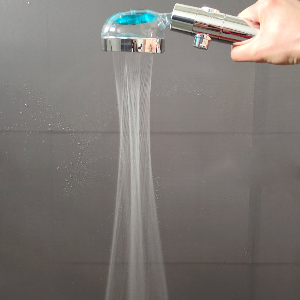 Encienda o detenga el agua pulsando el interruptor que se encuentra en el mango de la boquilla y ajuste la potencia del agua girando este mismo. ¡Muy cómodo para cuando se está duchando! Todo en uno.